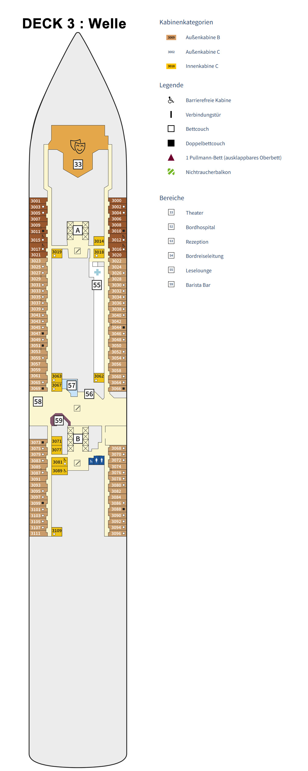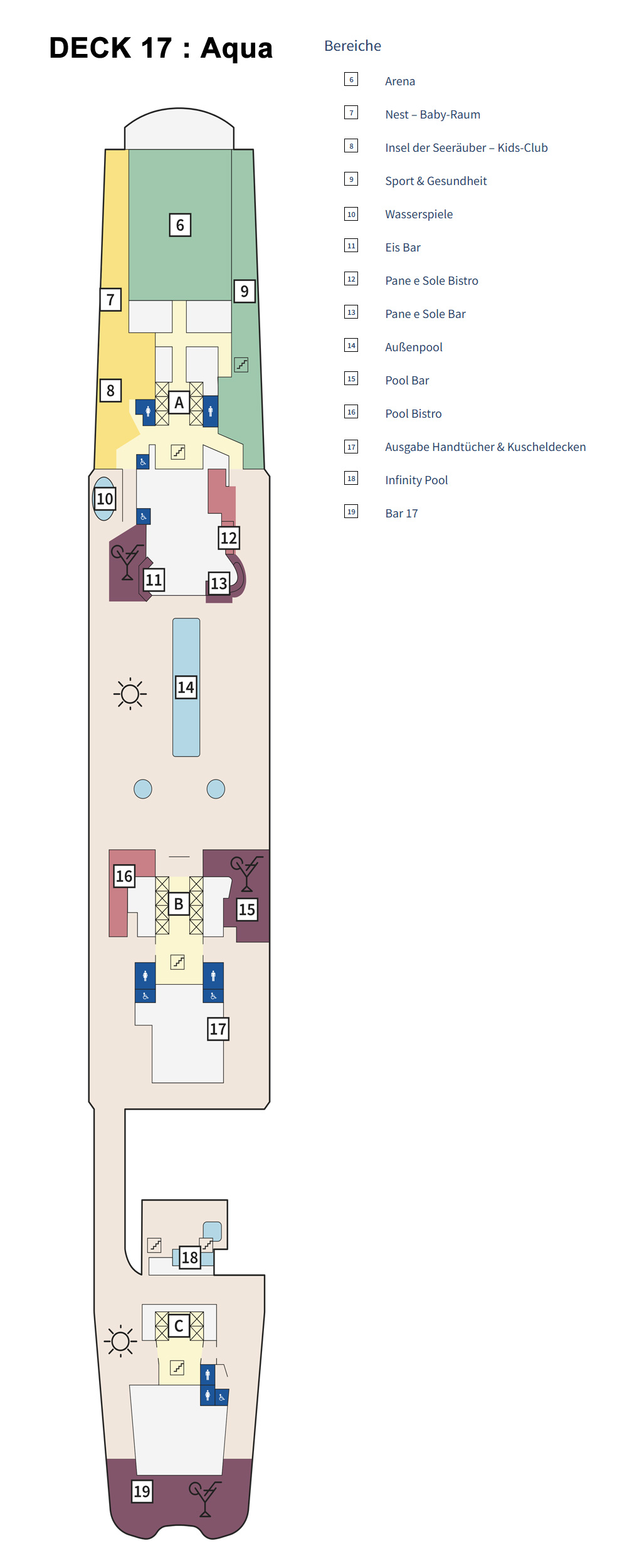 Das leichte und luftige Design zeigt sich in den öffentlichen Bereichen, Suiten und Kabinen. Gäste an Bord der Mein Schiff Flow dürfen sich auf das Höchstmaß an Genuss, Freiraum und Entspannung freuen, mit dem die Mein Schiff Flotte seit jeher Maßstäbe auf den Weltmeeren setzt.