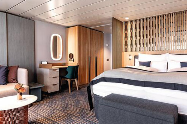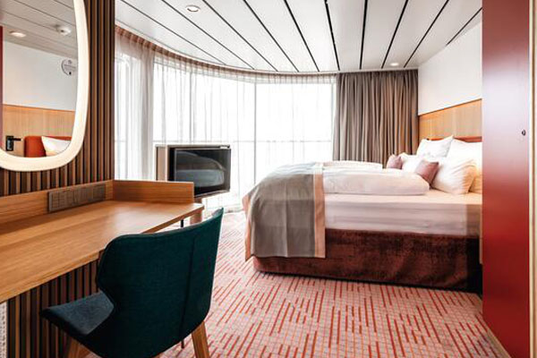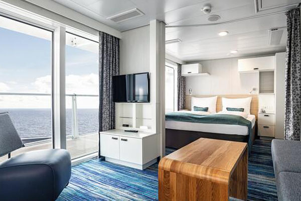 Am 9. Februar 2019 taufte Carolin Niemczyk, Sängerin der bekannten deutschen PopBand Glasperlenspiel, in Lissabon die Mein Schiff 2, die nach einer Bauzeit von fast genau 24 Monaten auf der finnischen Meyer Werft Turku das jüngste Flottenmitglied von TUI Cruises ist. Die Mein Schiff 2 ist, genau wie die in 2018 in Dienst gestellte Mein Schiff 1, Teil einer neuen Schiffsgeneration. Beide Schiffe sind rund 20 Meter länger als die vorherigen Neubauten. Neben noch mehr Platz zum Wohlfühlen, gibt es eine noch größere Auswahl an Kabinen und Suiten. Beide Schiffe bieten bei dem gewohnt großzügigen Passagier-Platz-Verhältnis bis zu 2.894 Gästen viel Raum zum Wohlfühlen. Alle Schiffe der Flotte sind vom Bug bis zum Heck auf Wohlfühlen und Entspannen ausgerichtet. Großzügige Deckflächen, ein hoher Anteil an Balkonkabinen, bis zu 47 Quadratmeter großen Veranden sowie ruhige Entspannungsinseln zeichnen die Flotte aus. Die Kabinen auf der Mein Schiff Flotte sind in einem stilvollen, individuellen Ambiente mit vielen Annehmlichkeiten eingerichtet. So genießen die Gäste überall an Bord der Mein Schiff Flotte den ersten Kaffee, mit der kabineneigenen Espresso-Maschine, ganz privat in der Kabine. Das Design der Kabinen ist hell, freundlich und zeitlos modern. Ausgewählte Möbel wurden liebevoll zusammengestellt, sodass sich die Gäste in ihrer Kabine sofort zuhause fühlen. An Bord der Neubauten haben mehr als 80 Prozent Balkonkabinen. Für das für TUI Cruises mit hoher Priorität behandelte Thema Umweltschutz sind an Bord der Mein Schiff Flotte durchgehend Umweltoffiziere im Einsatz. Sie kontrollieren die Einhaltung umweltrelevanter Bestimmungen an Bord, führen Umweltschutztrainings mit der Crew durch und stehen den Gästen für Fragen zum Umweltschutz zur Verfügung.